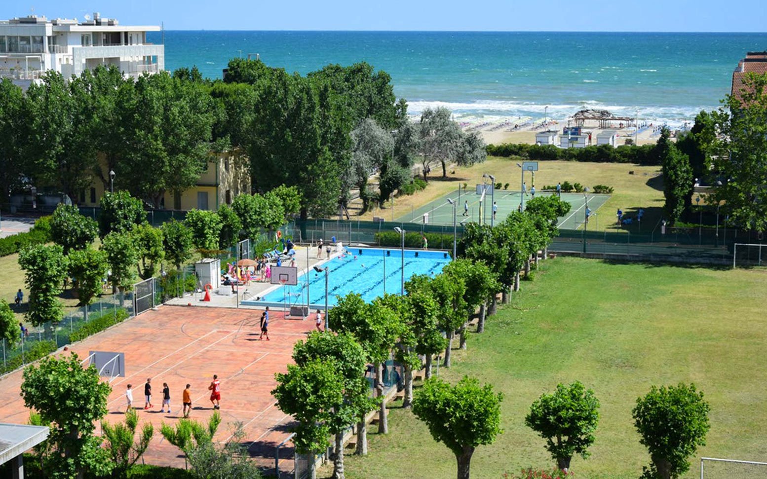 Untergebracht sind wir im Villaggio San Pellegrino, nur wenige Schritte vom Strand entfernt. Die Anlage bietet ideale Bedingungen für Sport, Spiel und Erholung. Neben täglichen Badminton-Trainingseinheiten, bei denen Technik, Koordination und Spielfreude im Mittelpunkt stehen, kommt auch der Spaß abseits des Feldes nicht zu kurz.